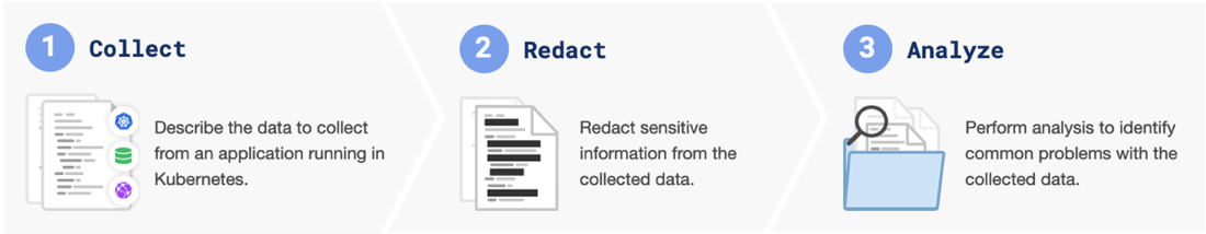 During the collection phase, collectors gather information from the cluster, the environment, the application, and other sources.